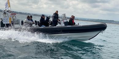 Our 7.8 Metre Ribcraft has a 325hp engine and is Fully coded for up to 11 passengers however we recommended a group of 5-9 for comfort. 4 double Jockey seats and a single jockey seat next to the driver. Unless absolutely flat, we do not allow passengers infront of the Jockey seats and.